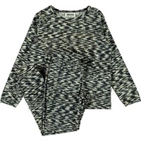 Two-piece nightwear set in the black and white 'Interference' print. The trousers have ties at the waist, and the top has long sleeves.