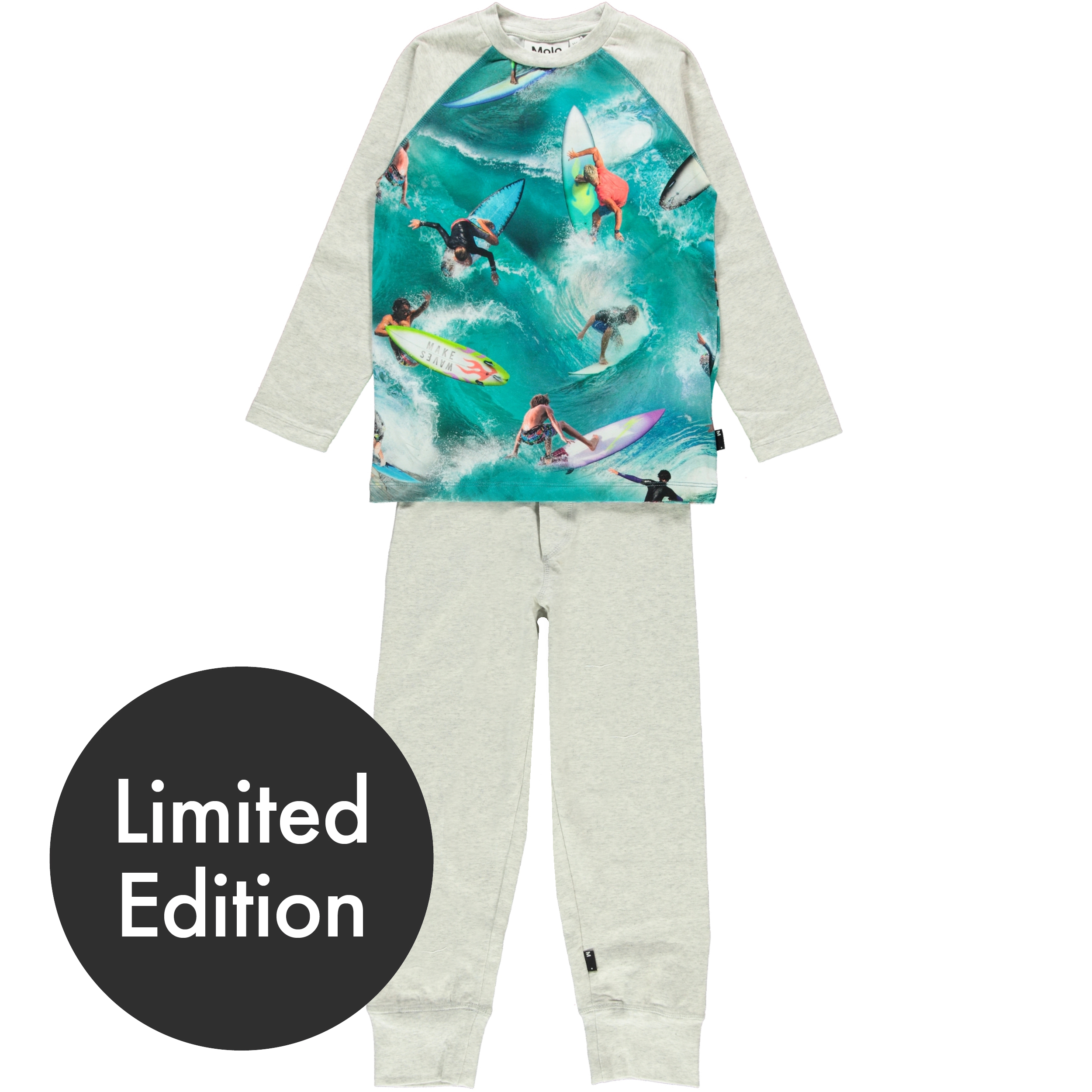 Comfortable spring and summer set that’s easy to move around in. The t-shirt is in a normal fit, and the long, solid coloured trousers help create a balanced look. The trousers have an elastic waist. Perfect for cozy, relaxing moments where comfort is essential.