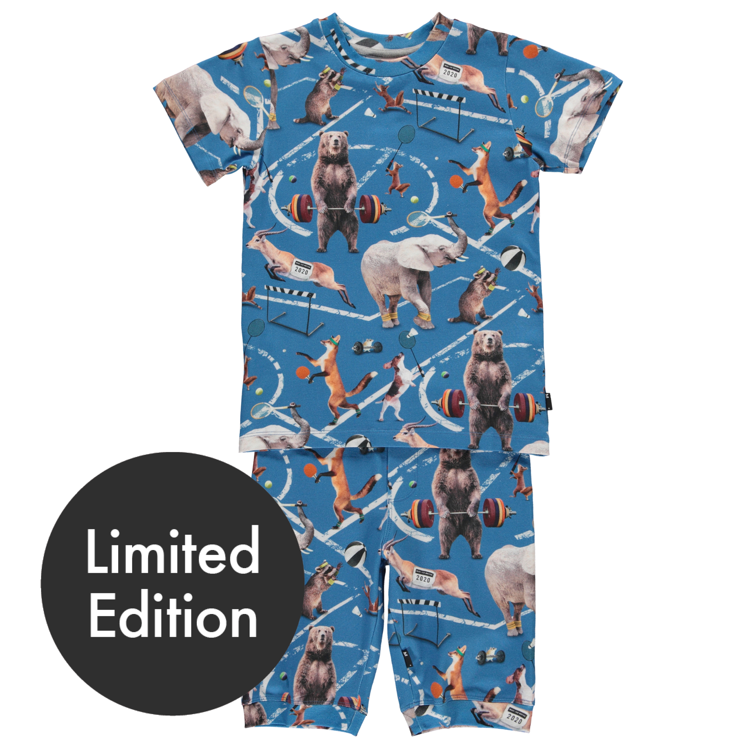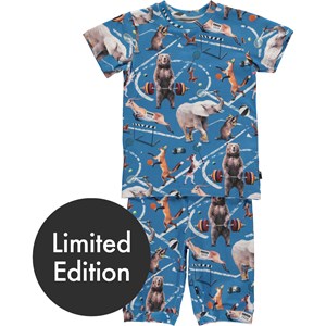 Two-piece pyjama set made of soft organic cotton featuring a round neckline and an elasticated waist.