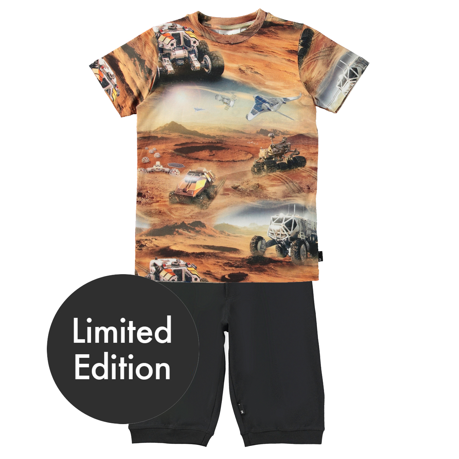 Two-piece pyjama set made of soft organic cotton featuring a round neckline and an elasticated waist.