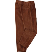 Brown corduroy trousers. They are constructed in 100% cotton, and they have side pockets, back pockets and are in a regular fit. The waist can be adjusted with inner elastic so they fit all children perfectly. Sizes 92-134 have a snap closure to make them easy to pull on and off. Sizes 140-176 have a regular jeans button.