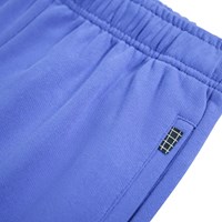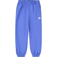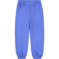 Blue sweatpants made of organic cotton with an elastic waist and inner drawstring, elastic around the ankles and side pockets. The sweatpants have a regular fit and a print with the text ''Humankind'' and a sun by the pocket.