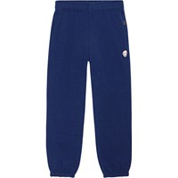 Green sweatpants in organic cotton with an elastic waist, internal drawstring, elastic at the ankles, and side pockets. The trousers have a regular fit and a print of the text "WorldPlay" in bright yellow. The trousers have a brushed inner face, making them soft and warm to wear.