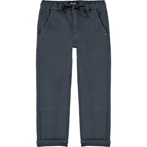 Aesy is a pair of chino trousers in dark blue with pockets and ties at the waist.