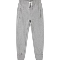 Organic cotton pants with drawstring and ribbed waistband, ribbed cuffs, concealed zip pockets on the sides, and a back pocket. The pants have a slim fit.