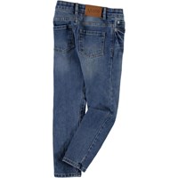 Aksel is pair of slim fit denim jeans in blue. Please note that sizes up to and including 134 have a snap and not a jeans button.