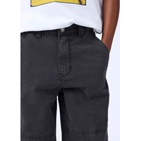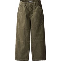 Grey cotton canvas pants inspired by the skateboarding scene. The pants have a loose fit with wide legs and cool stitching at the knees that adds character. The design includes five practical pockets and a zip fly.