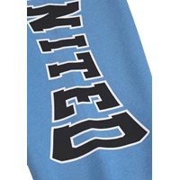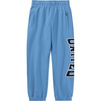 Blue sweatpants made of soft cotton with print detail on the side. The sweatpants have a regular fit, adjustable elastic at the waist with an internal drawstring, practical side pockets, a back pocket, and elastic at the bottom for a relaxed and flexible style. It is perfect for both play and everyday use.