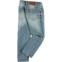 Alon is a pair of denim jeans in a blue wash. They have a comfortable, loose fit.