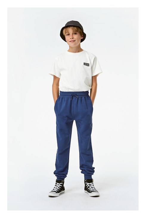 "Start a movement" with Alvar, which makes it easy to move around but still look cool. Alvar is a pair of blue sweatpants with an elastic waist and the "start a movement" print on the front and back.