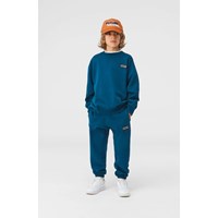 Ams is a pair of blue sweatpants with a Molo logo on the front. They have an elastic waist and legs.
