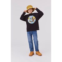 Andy is a pair of washed blue jeans in a relaxed, cool and comfortable fit. The adjustable waistband can be sized with an inner, adjustable elastic so they fit all children perfectly. Please note that sizes up to and including 134 have a snap and not a jeans button.