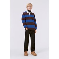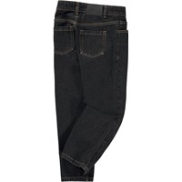 Dark jeans in a black wash with copper coloured stitching. These jeans are constructed in 100% cotton. They have side pockets, back pockets and are in an oversized fit. The waist can be adjusted with inner elastic so they fit all children perfectly. Sizes 92-134 have a snap closure to make them easy to pull on and off. Sizes 140-176 have a regular jeans button.