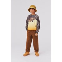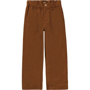Aron is a pair of Molo's new trousers in brown. They have a relaxed, wide fit and an elastic waist. Aron has large patch pockets.