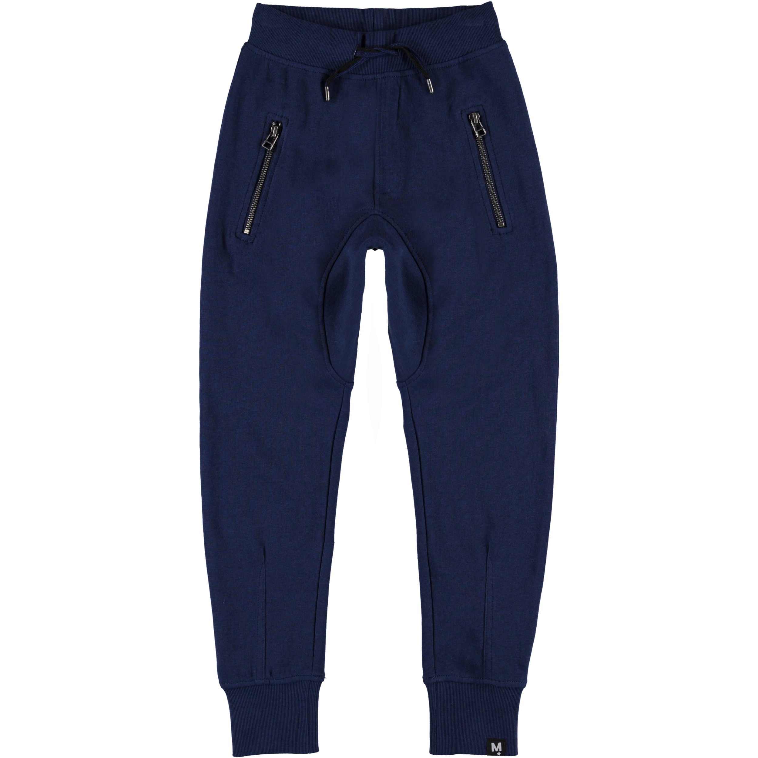 Everyone has their favourite item of clothing that they want to wear all the time. It's usually something that looks as cool as it feels. Ashton could very well become that favourite piece. Ashton is a pair of dark blue sweatspants, with a wide elastic waist, and a comfortable, loose fit. They have sporty details like striped ties and zip pockets at the sides.