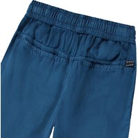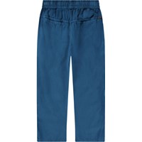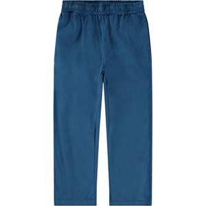 Blue pants, made from organic cotton. These pants have pockets on the sides, back pockets, an elastic waist with an internal drawstring, ensuring they fit well all day and are comfortable to wear. Aster has a regular fit.