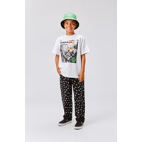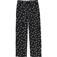 Aster is a pair of black trousers with a print of peace signs. The trousers are in a relaxed fit, and their elastic waist ensures that the they sit comfortably all day long.