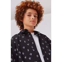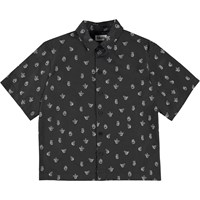 Richie is a black short sleeve shirt with a print of various white hand signs. Wear the shirt with matching shorts.