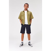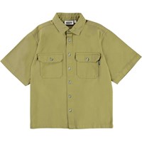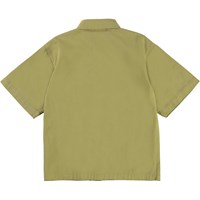 Rio is a green short sleeve shirt with two chest pockets. Rio has grey buttons. This Molo product is made of certified organic cotton.