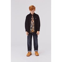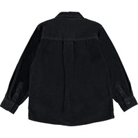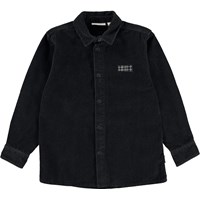 Roo is a cool black corduroy shirt with a Molo logo on one side of the chest. Use the shirt alone or layered over another shirt.