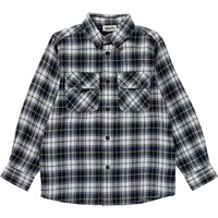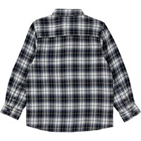 Black, white and blue plaid shirt. This shirt is constructed in 100% cotton, has a front button closure, button down collar, patch pockets, long sleeves with cuffs and is in a regular fit. Wear the shirt buttoned up or open over a t-shirt for a more cool look.
