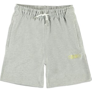 Adian is a pair of sweat shorts in a light grey melange with yellow "Joyous" embroidered on the left thigh with ties at the waist.