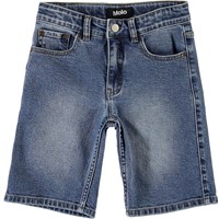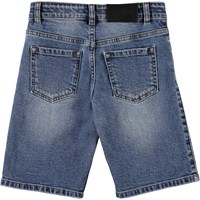 Adirk is a pair of washed blue denim shorts that are extra long. Adrik has front and back pockets.