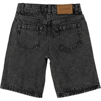 Adirk is a pair of black washed denim shorts with extra length. Adrik have front and back pockets.