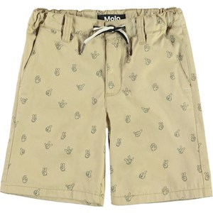 Ajvin is a pair of shorts in the "Mini Hands" print that has a lot of different hand signs. Ajvin has pockets at the sides and one on the back, ties at the waist and a black and white logo patch.