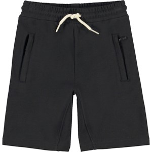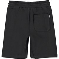Aliases is a pair of black shorts in organic cotton. The front has pockets with hidden zippers, and there is a single pocket on the back. Aliases has white ties at the waist.