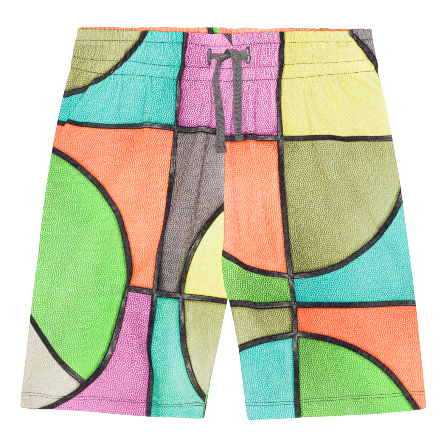 Shorts in organic cotton with a multi-coloured, all over basketball print. The shorts are knee length and are in a regular fit with an adjustable elastic waist. They have side seam pockets and a single back pocket.