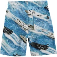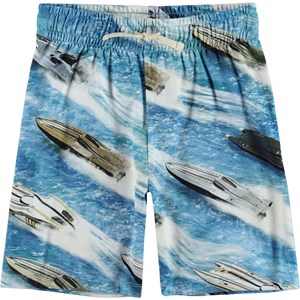 The Alim shorts in the "Electric Speed" print show incredibly fast speed boats that are tearing over a chrystal blue ocean. You can practically feel the wind in your hair and the spray of water on your face as the boats race by. Alim has an elastic waist with ties to make sure they stay in place.