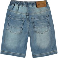 Ali is a pair of denim shorts that combine all the best elements to make them really comfortable. The shorts are light blue and have a wide elastic waist with ties. They have slightly wide legs.