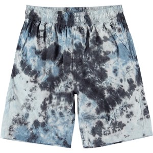 Avart is a pair of shorts with a tie-dye print in shades of blue. They have an elastic waist and side pockets. Wear the shorts with a matching top. All of Molo's tie-dye prints are handmade, so each garment is unique.