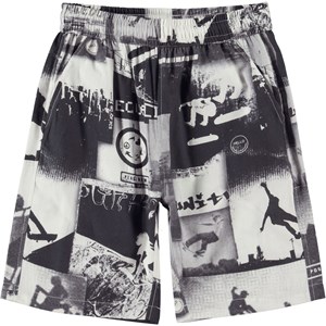 Avart is a pair of shorts with a print of various skaters. They have an elastic waist and side pockets. Wear the shorts with a matching top.
