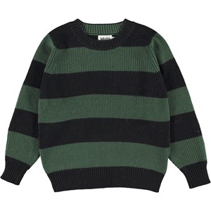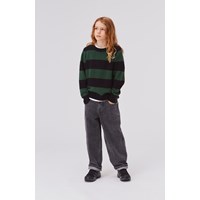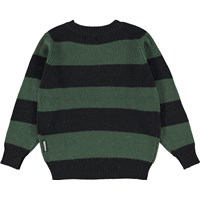 Bosse is a green and blue striped cotton knit top. The knit top has a rib at the neck, sleeves and bottom.