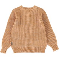 Bosse is an orange melange knit top in cotton. The knit top has a rib at the neck, sleeves and bottom.