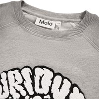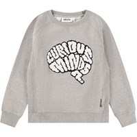 Grey sweatshirt made of soft organic cotton with a fluffy embroidery of the text ''Curious Mind''. The sweatshirt has raglan sleeves, ribbed edges around the neck, sleeves and waist and rib panels. The sweatshirt has a loose fit.