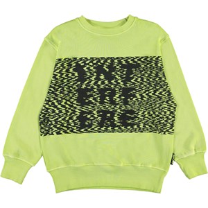 Mattis is a neon green sweatshirt with a black 'Interfere' print on the front.