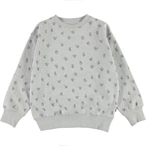 Mattis is a grey melange sweatshirt with the hand signs "Hands" print. Mattis has rib at the neck, wrists and waist.