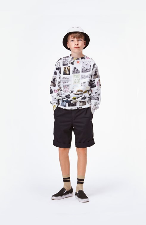 The Mattis sweatshirt is in the 'Scrapbook' print, that shows Molo has been digging through archives and found some wonderful old prints that make up this sweatshirt.