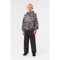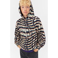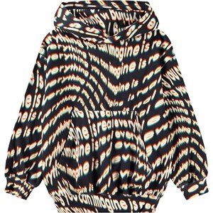 Multicoloured hoodie in organic cotton with a hood, pouch pocket, ribbed edges, and a brushed inner face, making it soft and warm to wear. The hoodie has an oversized fit and an all-over print of the text "Everything you can Imagine is Real". The text is blurred and curved, and like text on old screens, you can see red and green shades on the edges. If you prefer a more regular fit, we recommend choosing a smaller size than usual, even if the child is between two sizes.