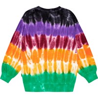 Multicoloured sweatshirt in tie-dye and organic cotton with a round neckline, ribbed hem at the waist and sleeves. The sweatshirt has a regular fit and a brushed inner face, making it soft and warm to wear. It has a placement print on the front of a large smiling face in white, creating a glitch effect.