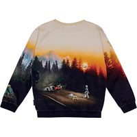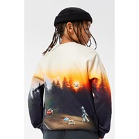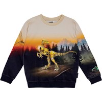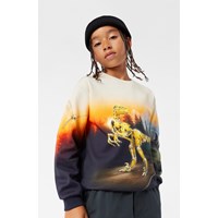 Multicoloured sweatshirt in organic cotton with a round neckline, ribbed cuffs and hem. The sweatshirt has a regular fit and a brushed inner face, making it soft and warm to wear. The print brings together the past and the future with a robot-dino and his robot friends.