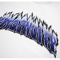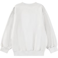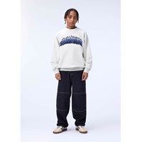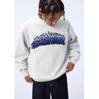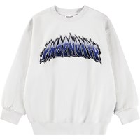 Off-white sweatshirt made of soft organic cotton with a fluffy embroidery of the text ''Ingenuity'' surrounded by flames. The sweatshirt has ribbed edges around the neck, sleeves and waist. The sweatshirt has a loose fit.