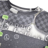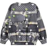 Grey sweatshirt made of soft organic cotton with a print of skateboards. The sweatshirt has ribbed edges around the neck, sleeves and waist. The sweatshirt has a loose fit.