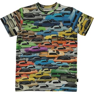 An abundance of colourful cars creates the all-over print on the Ralphie t-shirt. Ralphie has short sleeves and is in 100% cotton.