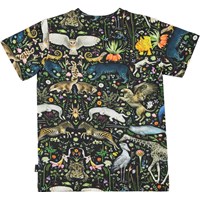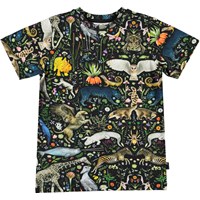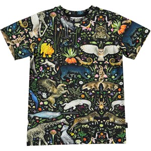 Raphie is a black t-shirt with the 'Faunatastic' print, which is filled with animals and plants.