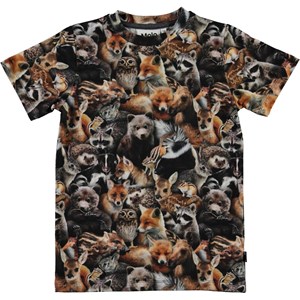 Ralphie is a t-shirt with an all-over print of a gathering of forest animals. Can you find the bears or porcupines? Or maybe a new species of animal? The t-shirt has a round neck.