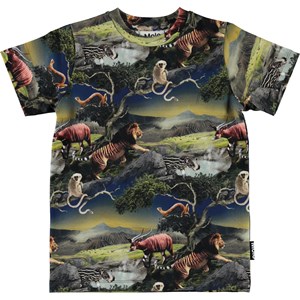 We travel ahead in time in the 'Future Animals' print on the Ralphie t-shirt, where animals no longer really look like themselves.